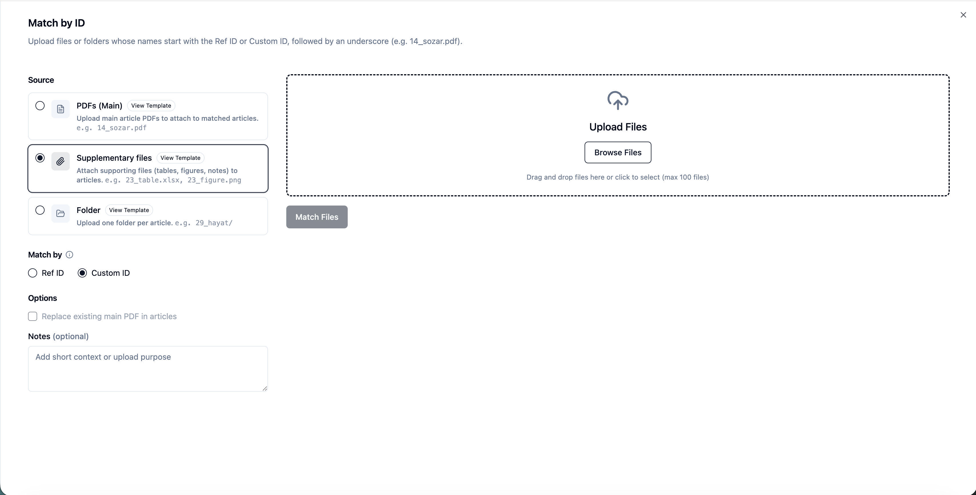 Managing supplementary files alongside primary PDFs can be complex—especially when teams rely on internally defined identifiers instead of RefIDs.